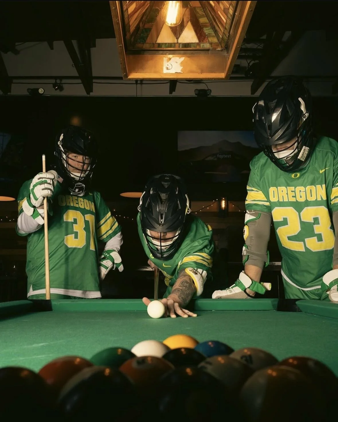 For our St. Patrick’s Day game, we decided to hold our uniform reveal shoot inside Max’s Tavern, a local bar near campus. With its deep wood accents and warm lighting, the bar gave off the feeling of an old Irish pub for this shoot. Of course, we had to showcase our all-green uniforms for the occasion.