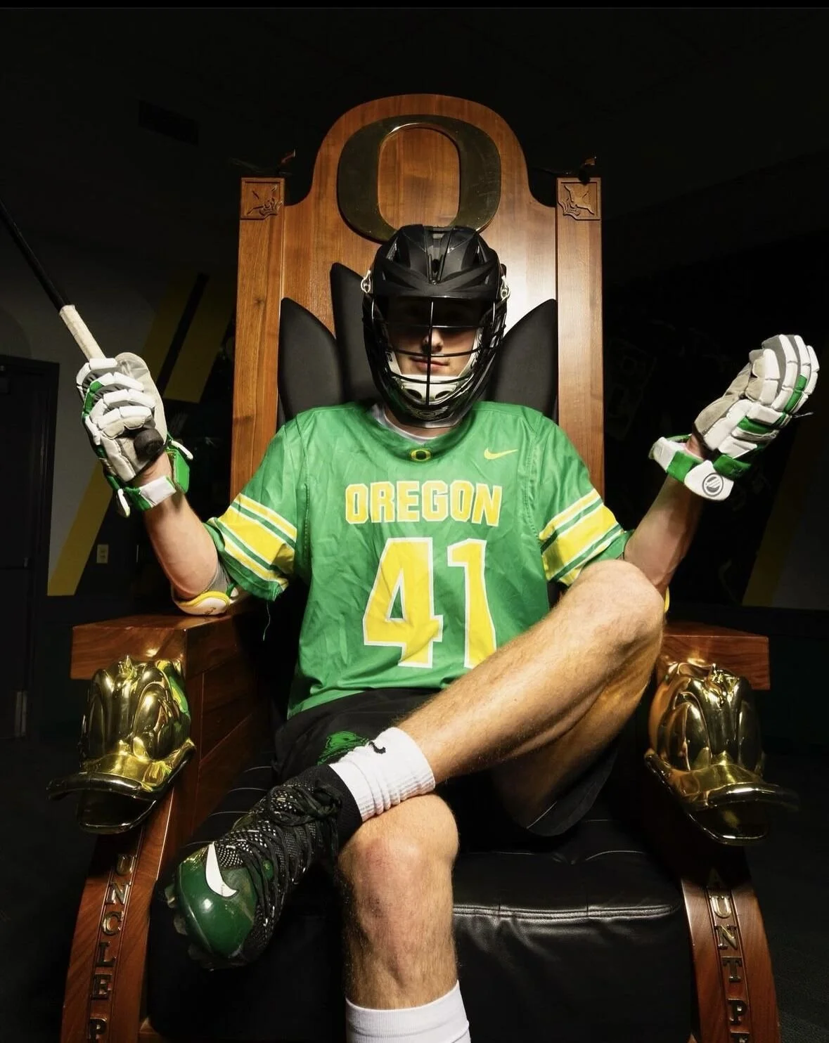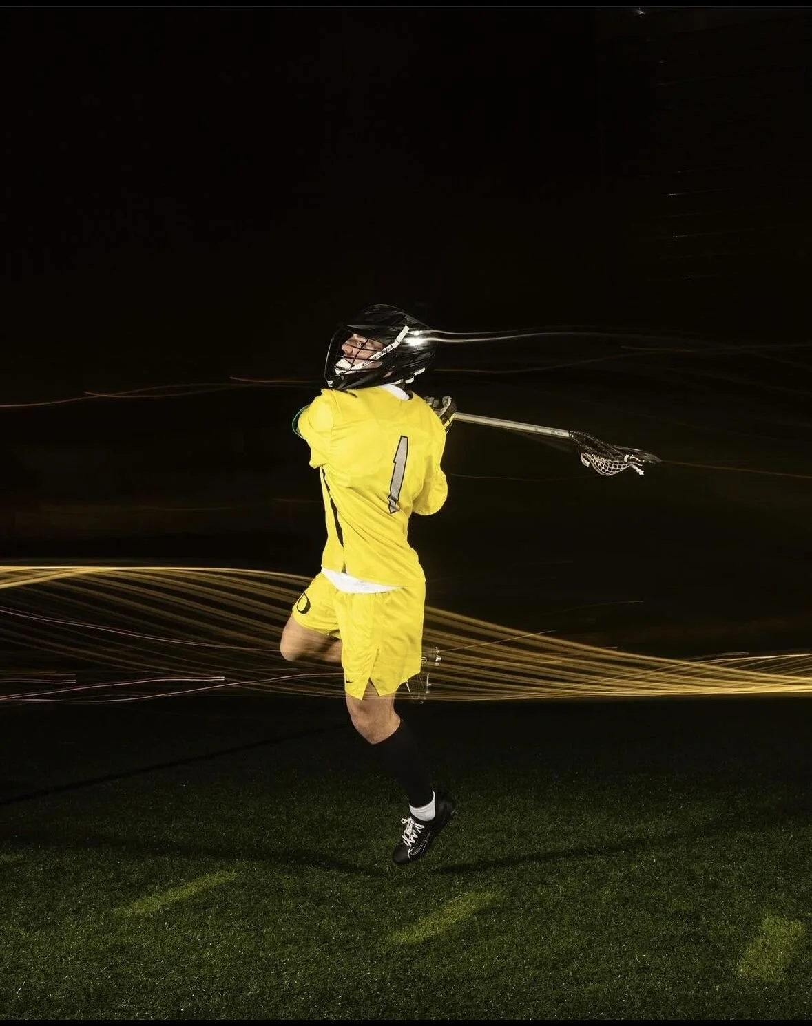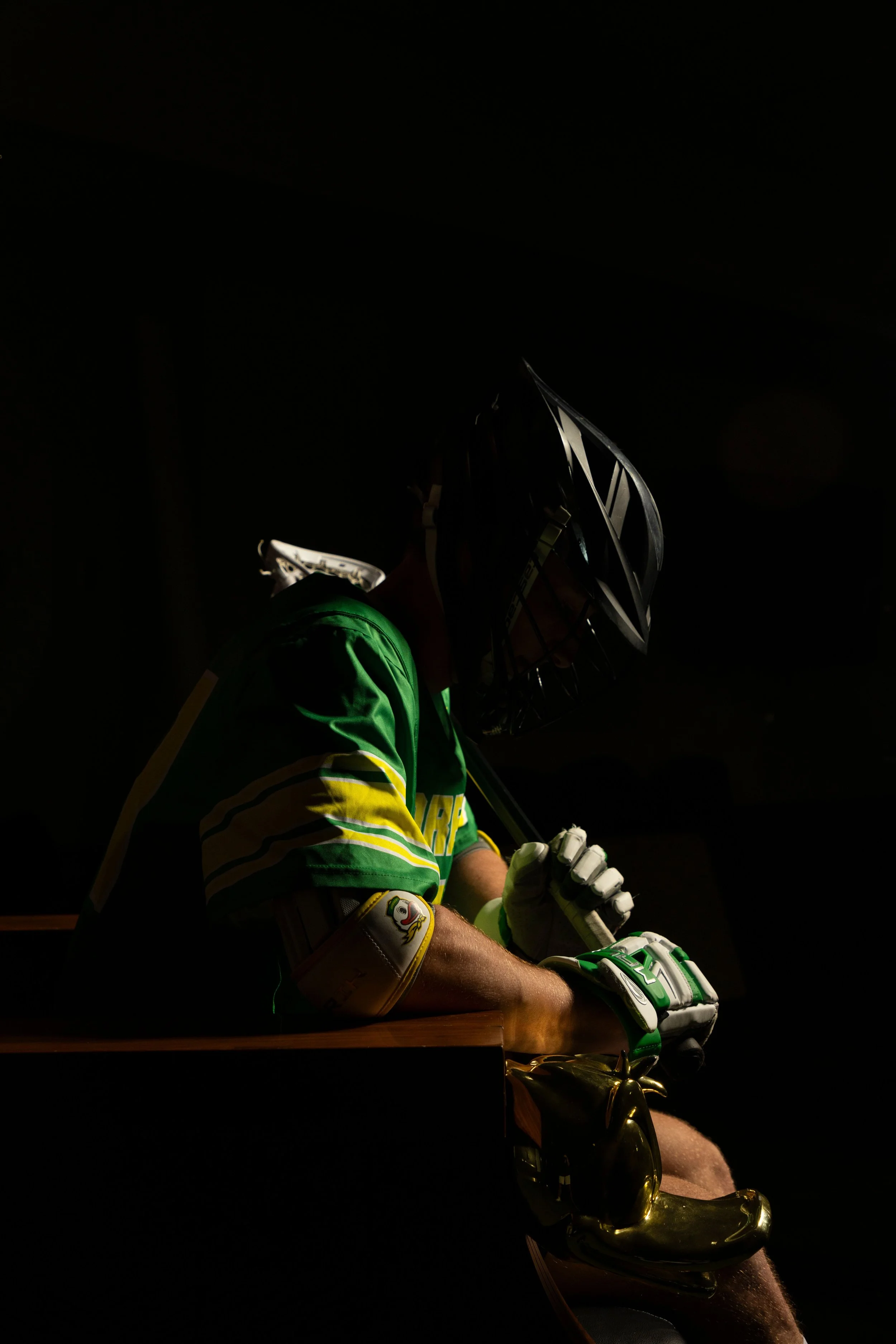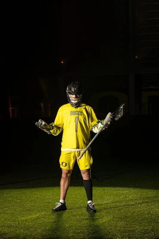 For this shoot our photographer MQ, who also works for the football team, was able to sneak us into the cool “throne” room where all of the D1 teams shoot. The background wasn’t great, but we were able to use the lighting to hide it a little and make this a super dramatic shoot.