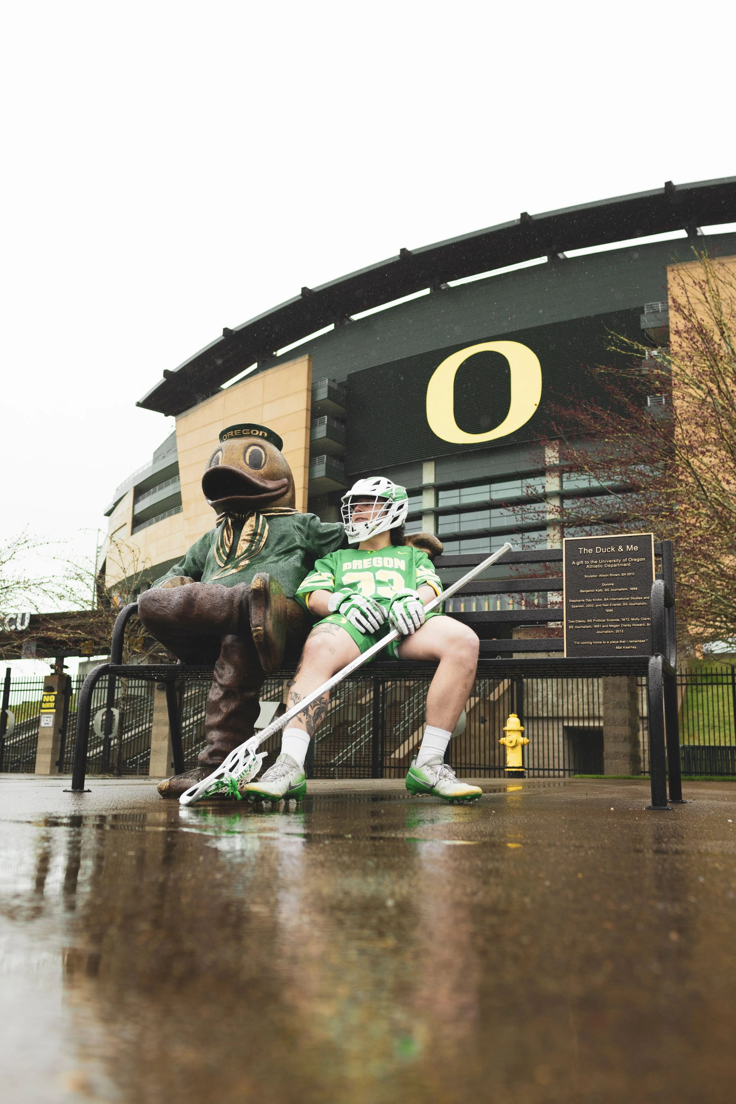 Against our rivals in Washington, we wanted something that was very “Oregon”. We decided on Autzen on a rainy day as the backdrop, and included some cool accent shots.